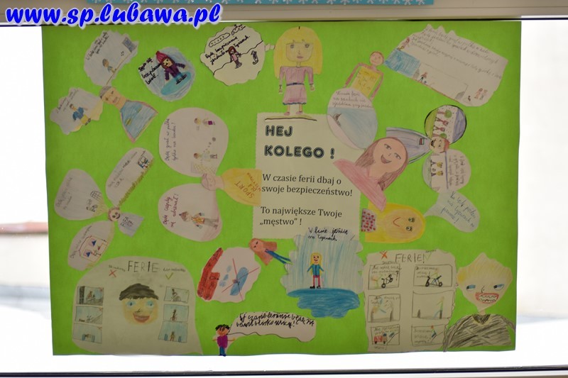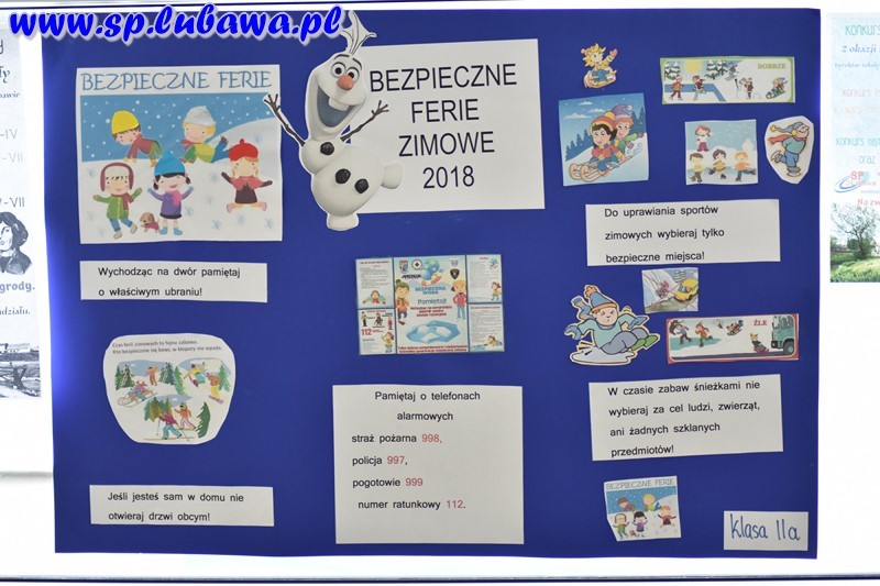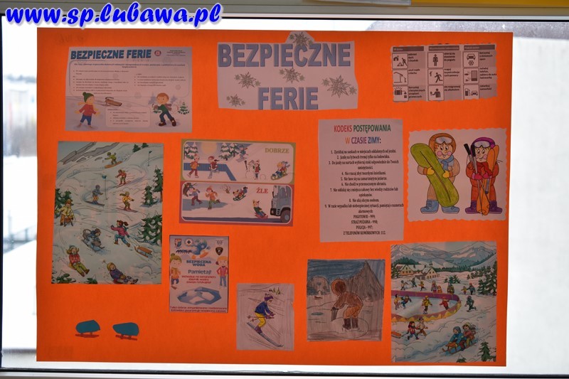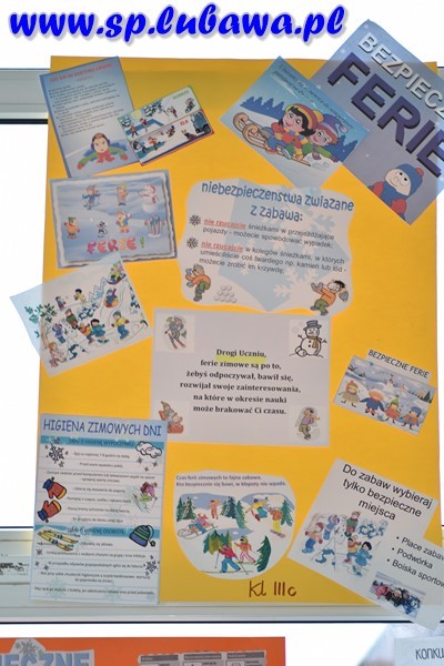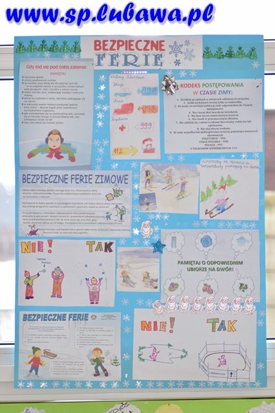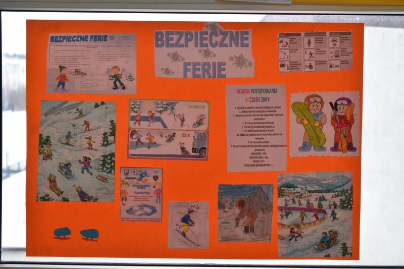 Od 22 stycznia rozpoczynają się ferie zimowe. To czas wolny od szkoły, czas zabaw na śniegu i lodzie. Aby był on wykorzystany jak najefektywniej, musi być zachowane bezpieczeństwo. Dlatego też w naszej szkole zorganizowano konkurs plastyczny Bezpieczne ferie 2018. Celem konkursu było przypomnienie uczniom,jakich zasad powinni przestrzegać, aby zimowe zabawy były bezpieczne. W konkursie wyróżniono plakaty klas: IVb, IIa, IIIg, IIIf, IIIa i IIIc. W ramach działań na rzecz bezpieczeństwa w czasie ferii zorganizowano spotkanie z przedstawicielami policji, którzy w sposób bardzo dostępny i ciekawy przedstawili najczęstsze zagrożenia, z jakimi mogą się spotkać uczniowie i jak ich uniknąć.