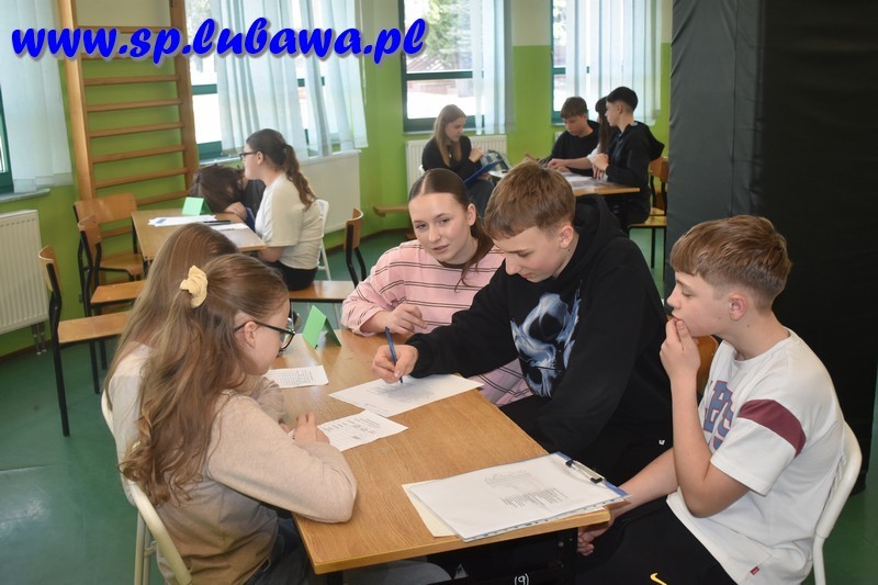 Szczególnym zainteresowaniem cieszyły się zawody drużynowe, podczas których uczniowie musieli zmierzyć się z dziewięcioma różnorodnymi stacjami zadaniowymi. Wśród nich znalazły się m.in.: Kahoot, tangramy, krzyżówki, wykreślanki, rebusy, zagadki logiczne i zapałczane, a także „wesołe bryłki”, gdzie uczestnicy rozpoznawali bryły geometryczne za pomocą dotyku, określając liczbę ich wierzchołków, krawędzi i ścian. Dużym wyzwaniem okazało się również zadanie „Namiary na liczbę π”, polegające na odcięciu odcinka sznurka o długości jak najbardziej zbliżonej do 3,14 m – bez użycia jakichkolwiek przyrządów pomiarowych.