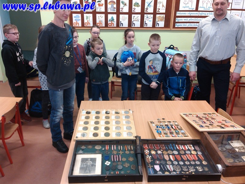 W czwartek 19. stycznia w rocznicę powrotu Lubawy do Macierzy uczniowie klasy 3 f wraz z zaproszonymi kolegami z klasy 1a uczestniczyli w ciekawej lekcji historii. Zajęcia prowadzili przedstawiciele Muzeum Broni i Militariów w Lubawie – pan Jarosław Kijewski oraz st. chorąży rezerwy Wojska Polskiego i st. chorąży sztabowy Służby Granicznej – Mariusz Zimnicki. Goście przekazali uczniom wiele informacji na temat dziejów Lubawy sprzed stu lat i późniejszych. Zaprezentowali niezwykłe, oryginalne zbiory odznaczeń i akcesoriów związanych z wojną oraz z działaniami różnorodnych misji pokojowych na świecie. Przypomnieli też o zachowaniu bezwzględnego bezpieczeństwa w przypadku znalezienia nieznanych, metalowych lub innych pojemników.