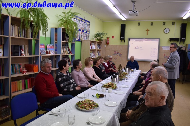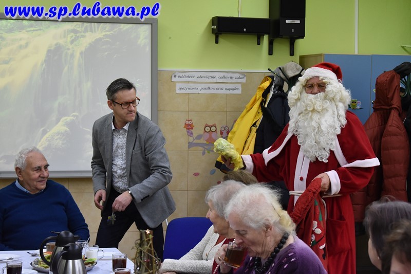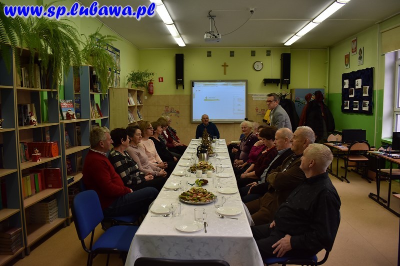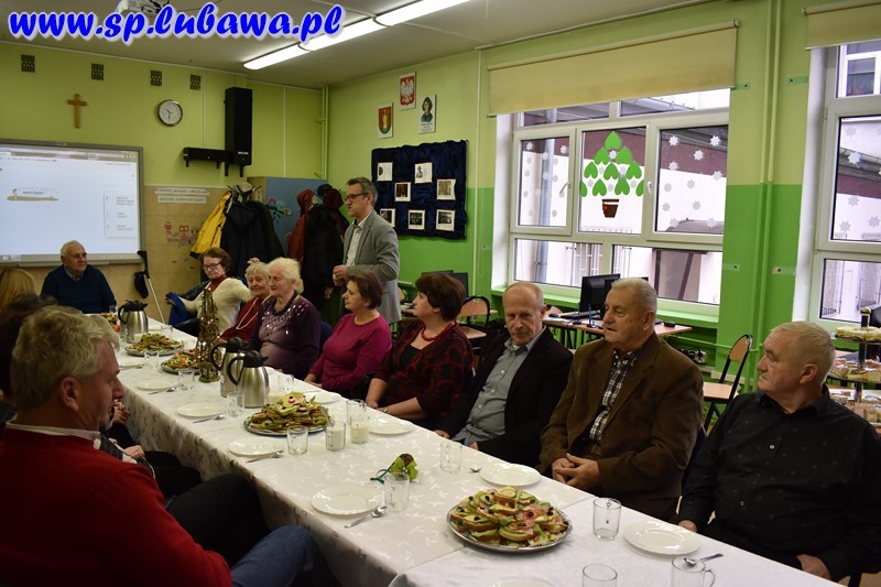 Po skończonym koncercie goście-emeryci przeszli do biblioteki szkolnej na mały poczęstunek. Dyrektor złożył życzenia i przekazał drobne upominki.