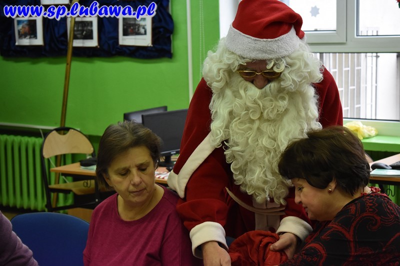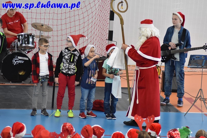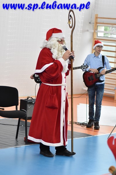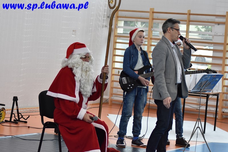 W naszej szkole od rana czuliśmy atmosferę tego dnia. Uczniowie i nauczyciele paradowali po korytarzach w mikołajkowych czapkach, obdarowywali się drobnymi upominkami. O godz. 11.00 całą społeczność szkolną odwiedził Mikołaj, który rozdawał uczniom słodycze i życzenia. Dla naszej szkoły jest to dzień szczególny, ponieważ nasz patron, Mikołaj Kopernik, obchodziłby tego dnia swoje imieniny. Pamiętamy o tym, dlatego z tej okazji pojawił się tort imieninowy zakupiony przez Radę Rodziców, przybyli też goście – emerytowani pracownicy naszej szkoły, którzy zasiedli wśród uczniów i wzięli udział w krótkim koncercie mikołajkowym. Przygrywał zespół Papugi prowadzony przez pana Michała Kanterewicza. Chłopcy, którzy noszą imię Mikołaj, od św. Mikołaja otrzymali drobne imieninowe upominki, natomiast wszyscy uczniowie paczki ze słodkimi piernikami, które także ufundowała Rada Rodziców.