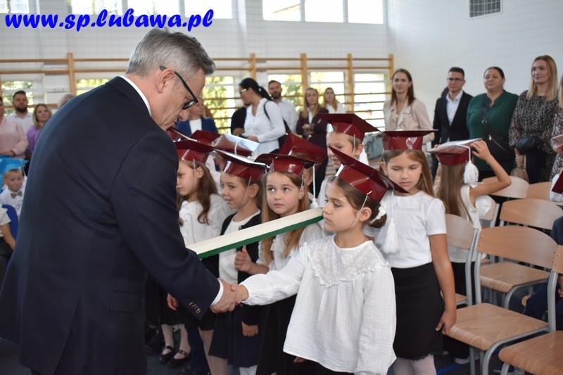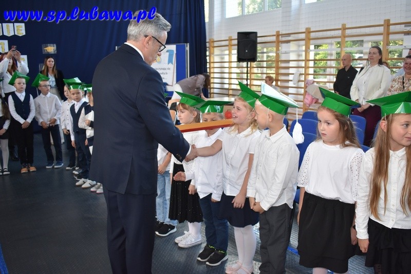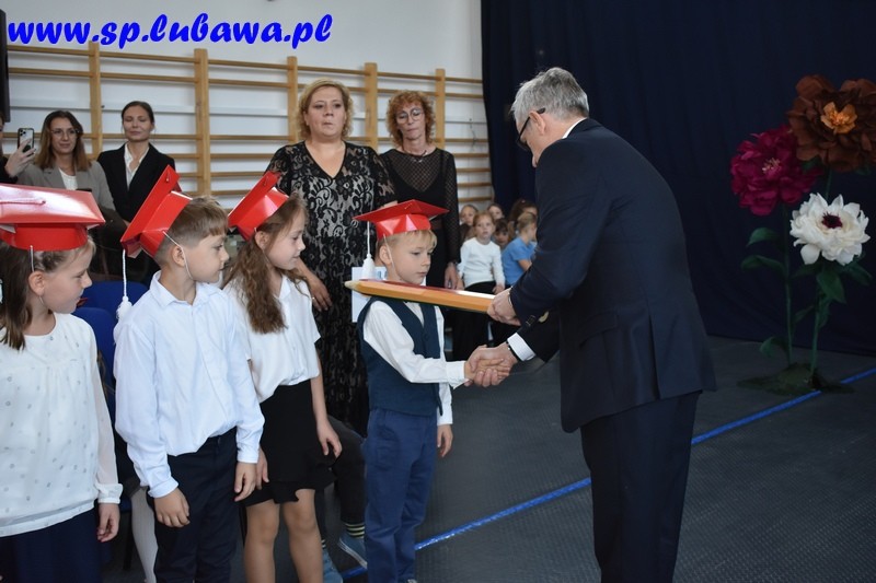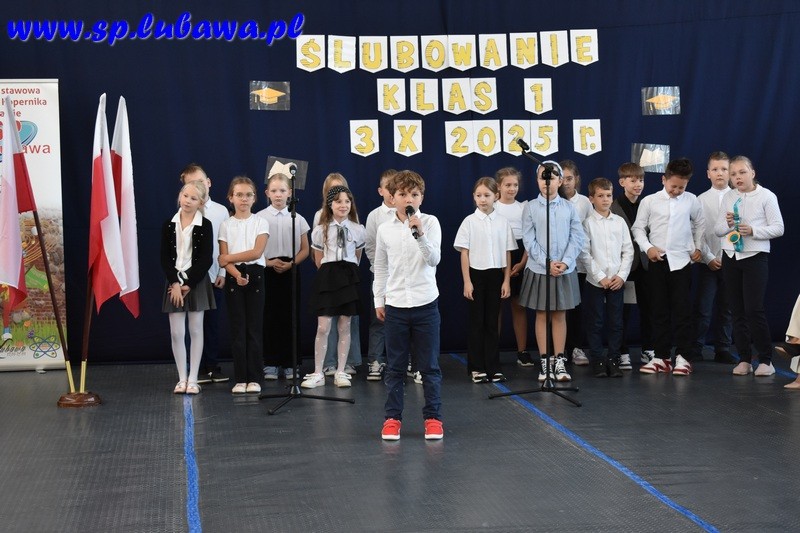 3 października 2025 r. odbyło się uroczyste ślubowanie i pasowanie na ucznia. To był wyjątkowy dzień. W podniosłej atmosferze przed pocztem sztandarowym pierwszoklasiści ślubowali być dobrymi uczniami i Polakami, a swym zachowaniem i nauką sprawiać radość rodzicom i nauczycielom. Po złożeniu ślubowania Pan Dyrektor Mirosław Kowalczyk dokonał symbolicznego pasowania na ucznia, dotykając ołówkiem jak czarodziejską różdżką ramion pierwszoklasistów. Gratulacje oraz życzenia samych sukcesów pierwszaki otrzymali od Rady Rodziców oraz starszych kolegów naszej szkoły.