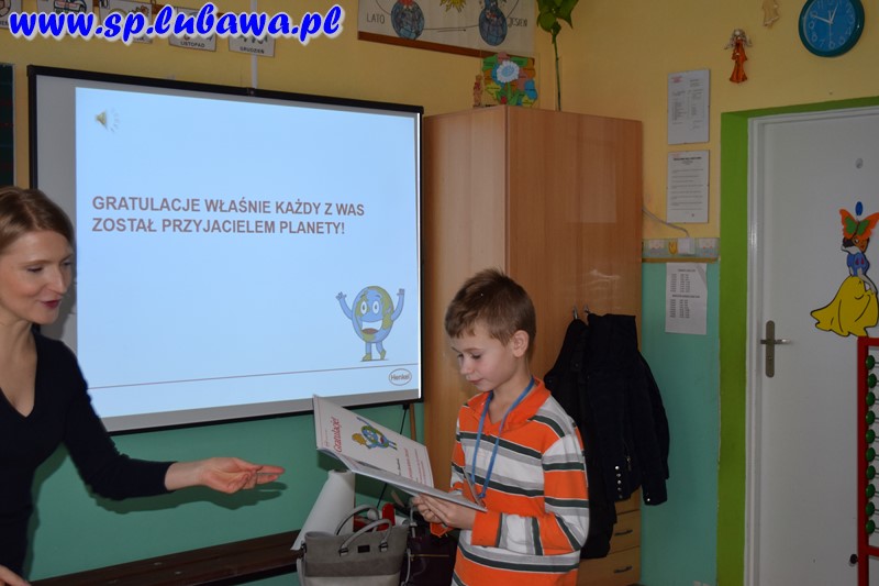 Podczas zajęć uczniowie razem z Globikiem poznali problemy naszej planety Ziemi . Uczyli się wraz z nim, jak segregować śmieci, oszczędzać energię elektryczną i wodę. Prezenterka wyjaśniła dzieciom na czym polega zrównoważony rozwój. Filmy edukacyjne, których bohaterami były zwierzęta, w przystępny sposób pokazywały, jak nie marnować zasobów naszej planety i ponownie wykorzystywać i odzyskiwać naturalne bogactwa Ziemi. Na zakończenie uczniowie otrzymali książeczki edukacyjne i dyplomy PRZYJACIELA ZIEMI.