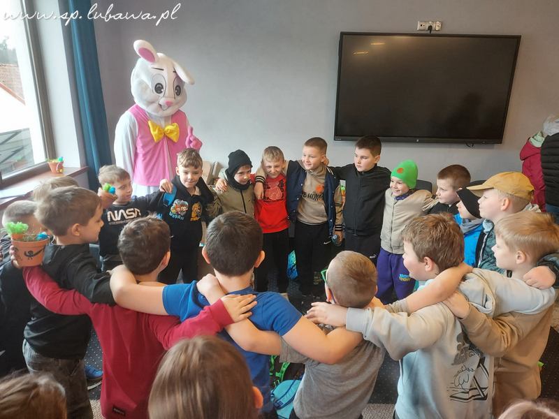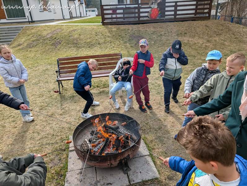 Pierwszym punktem programu było spotkanie z Wielkanocnym Zajączkiem, który przywitał dzieci i zaprosił do wspólnej zabawy. Uczniowie wzięli udział w wielu radosnych aktywnościach: zabawach sportowych na świeżym powietrzu, szukaniu ukrytych jajeczek, pieczeniu kiełbasek w ognisku, tworzeniu dekoracji wielkanocnej.