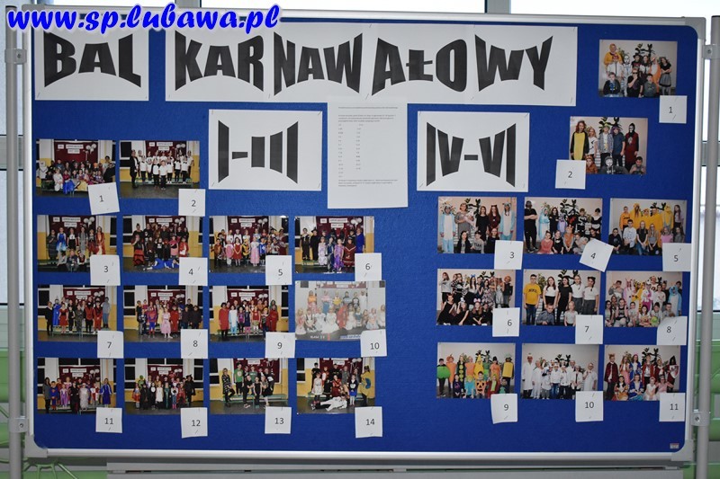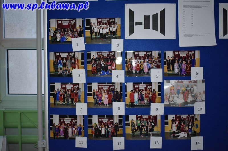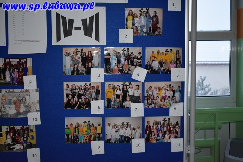 Podczas balu karnawałowego przeprowadzono konkurs na najładniej przebraną klasę. W konkursie brało udział 25 klas I-VI. Klasy I-VI głosowały 15 i 16 stycznia. Z uzyskanych od wychowawców protokołów głosowań obliczono głosy na poszczególne klasy, które uzyskały następujące wyniki: