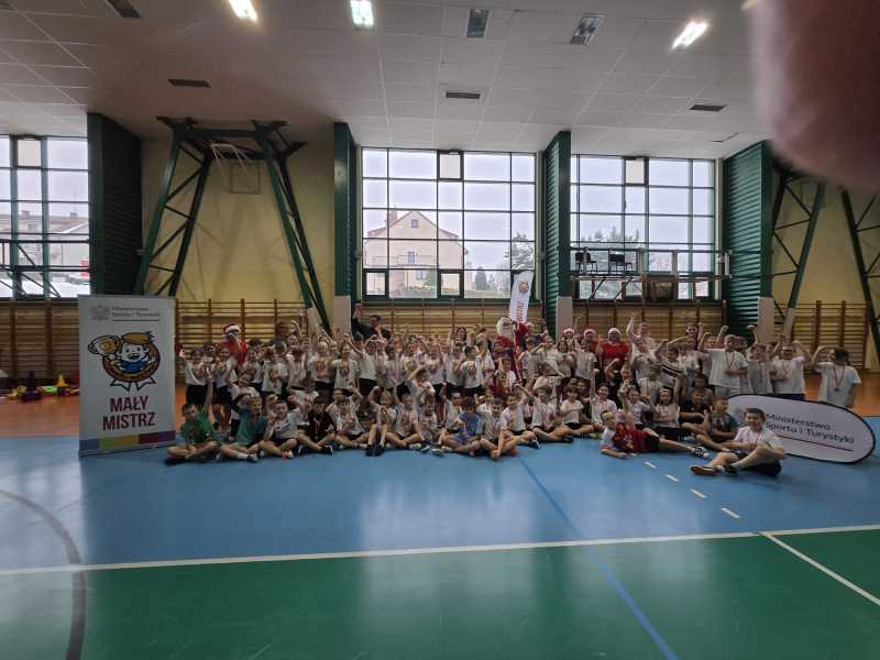 375 dzieci uczestniczyło w konkurencjach sportowych takich jak przeciąganie liny, jazda na hulajnodze, układaniu hasła Mały Mistrz, wieży z kubków, przewożenie kolegów i koleżanek na materacach. Uczniowi klas trzecich wykonały rysunki pt. Mały Mistrz.