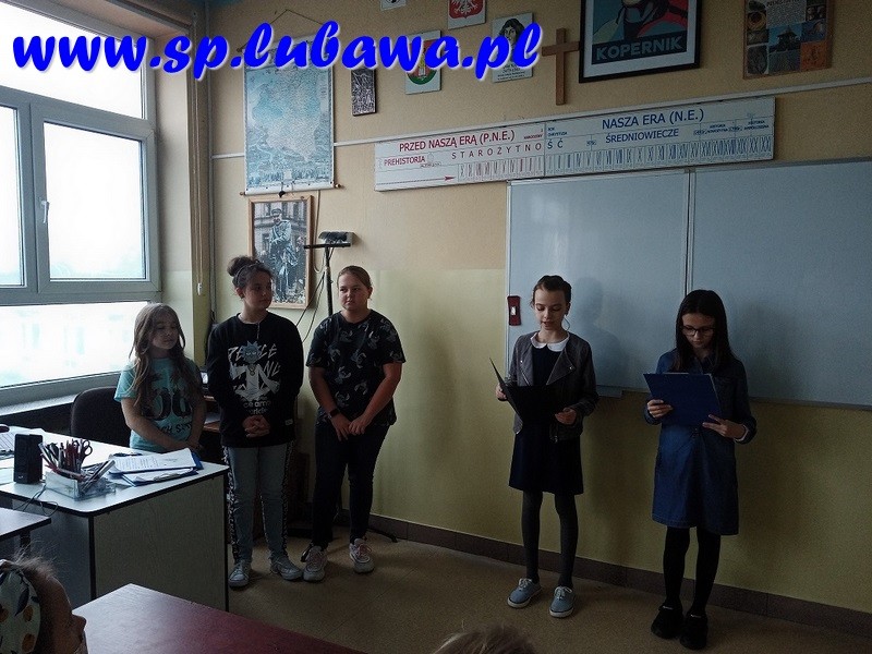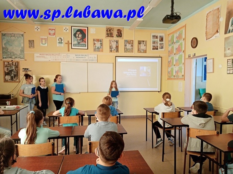 Prezentację dla uczniów z klas I-V przedstawiły uczennice: Anna Kopańska (kl. IV E), Julia Dembska (kl. V D), Kinga Lange (kl. V D), Julia Lewicka (kl. V D) i Marta Krawiecka (kl. V D).  Starszym uczniom przesłano linki do stron z ww. informacjami.