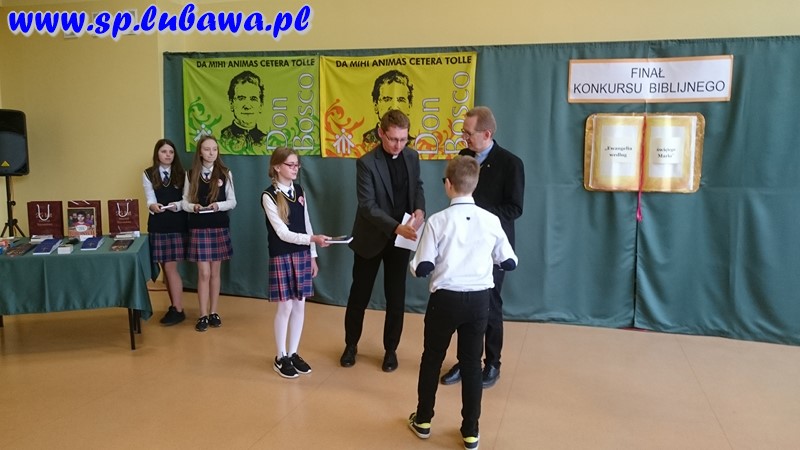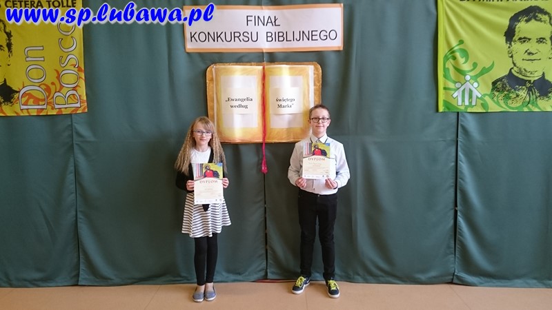 22 kwietnia 2017 roku w Toruniu odbył się finał diecezjalnego konkursu biblijnego “Jezus w Ewangelii św. Marka”. Po etapie szkolnym i rejonowym do ścisłego finału dostało się dwoje uczniów naszej szkoły: Karolina Zielińska z klasy V s i Paweł Byglewski z klasy V c. W finale znalazło się 17 najlepszych osób wyłonionych w poszczególnych diecezjach: brodnickiej, grudziądzkiej i toruńskiej. Uczniowie zmagali się ze szczegółowymi pytaniami dotyczącymi treści Ewangelii św. Marka wraz z komentarzem. Karolina Zielińska osiągnęła szósty wynik w diecezji. Niewiele zabrakło do wyróżnionej najlepszej piątki, która po części pisemnej zmagała się z częścią ustną. Niemniej jednak serdecznie gratulujemy naszym uczniom, gdyż już samo uczestnictwo w finale było sporym osiągnięciem.