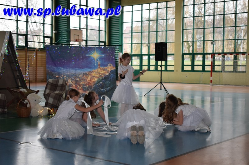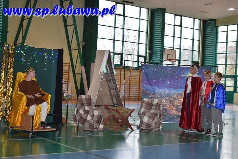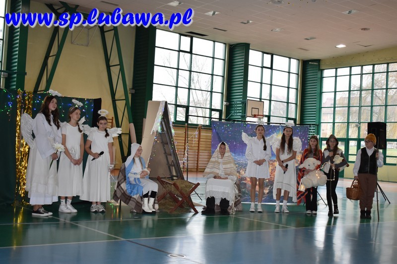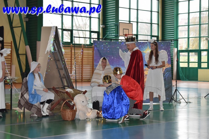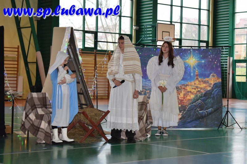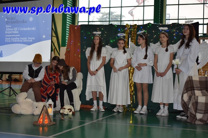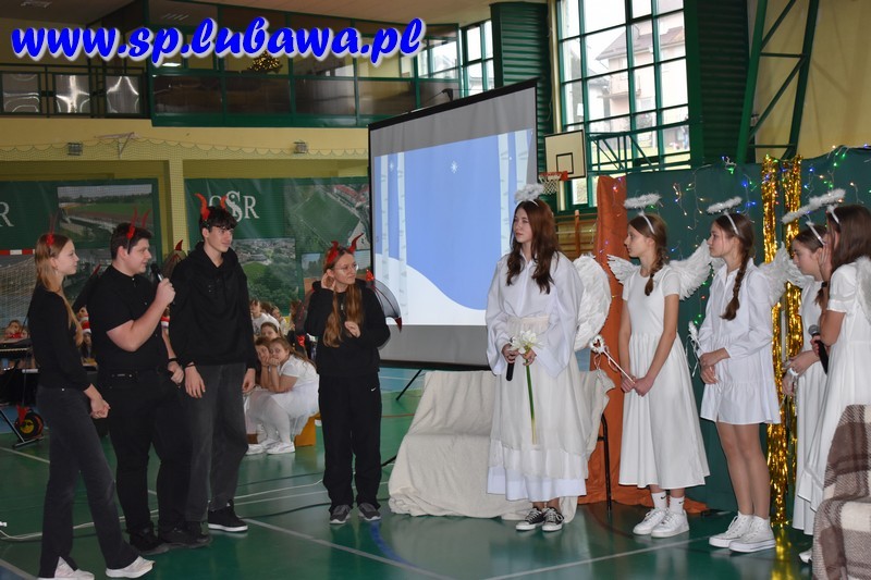 W ostatni dzień przed przerwą świąteczną mieliśmy okazję całą społecznością szkolną wspólnie włączyć się w radość Bożego Narodzenia. Młodzież Kopernika przygotowała przedstawienie opowiadające o wydarzeniach sprzed dwóch tysięcy lat, jakie miały miejsce w niewielkim mieście, Betlejem. Były anioły, były i diabły. Był czyhający na życie bezbronnego niemowlęcia Herod. Pastuszkowie i królowie oddali hołd Mesjaszowi, zachęcając i nas do przyjęcia postawy pokory i wdzięczności wobec Stwórcy, który sam przyjął skromną postać maleńkiego, niewinnego dziecka. Wszystko to w oprawie muzycznej naszych lubawskich talentów: Gwiazdeczek Kopernika pod opieką Pań Doroty Fryzy i Walentyny Miszczak, uczniów siódmych klas grających na flecie i dyrygowanych przez Pana Michała Kanterewicza, uczennic klas siódmej i ósmych, które wykazały się talentami wokalnymi oraz uczniów klas trzecich, którzy pięknie śpiewali i tańczyli, przygotowani przez wychowawczynie: Panie Annę Aleksandrowicz, Karolinę Szarek oraz Agnieszkę Więcek. Trzonem spotkania były jasełka, przedstawienie w wykonaniu uczennic i uczniów klas szóstych, ósmych i jednej z siódmych. Aktorzy w ekspresyjny sposób zaprezentowali historię narodzin Jezusa Chrystusa, a także pozwolili nam zajrzeć za kulisy tego przedsięwzięcia, pokazując w krótkich materiałach filmowych, jak wyglądały ich przygotowania do występu. Całość koordynowali katecheci lubawskiego Kopernika: Pani Agnieszka Witkowska była odpowiedzialna za kształt jasełek – to ona koordynowała przebieg przygotowań, ćwiczyła z młodzieżą, przygotowała scenografię przy wsparciu technicznym Pana Jana Kołodziejczyka, a także utworzyła prezentację multimedialną będącą integralną częścią przedstawienia. Pani Anna Wróblewska-Zimnicka czuwała nad grupą młodzieży w trakcie występu. Pan Łukasz Szauer wsparł przedsięwzięcie dostarczając części rekwizytów oraz kostiumów, a także wspierał technicznie. Rzecz by się nie udała bez zaangażowania Pana Michała Kanterewicza, który zajął się nagłośnieniem.