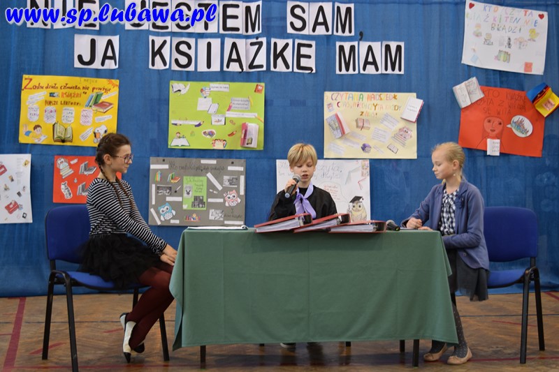 Podczas apelu kółko recytatorsko – krasomówcze i uczniów zdolnych zaprezentowało przedstawienie „Książka przed sądem”.