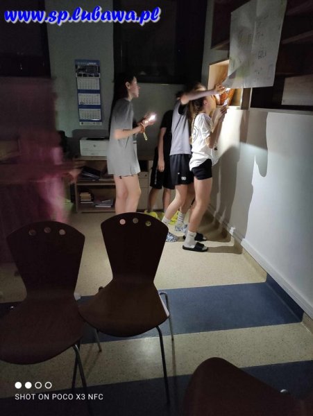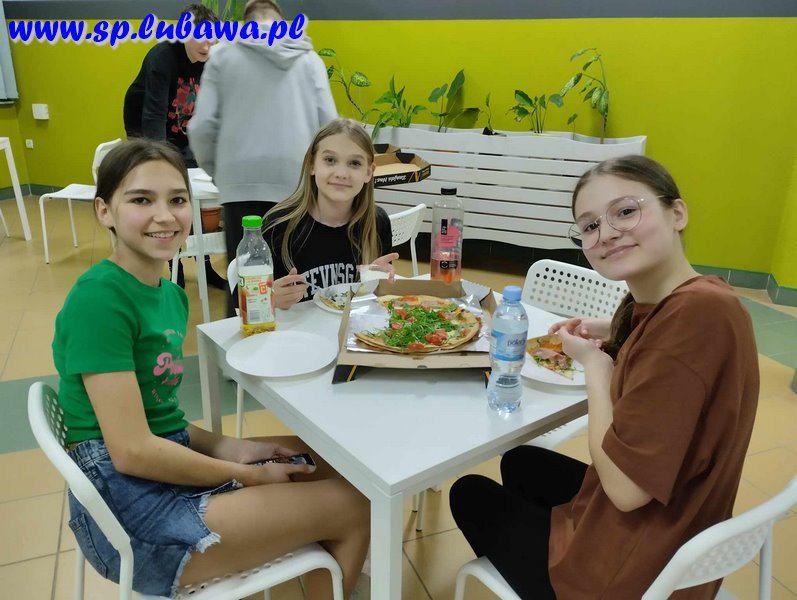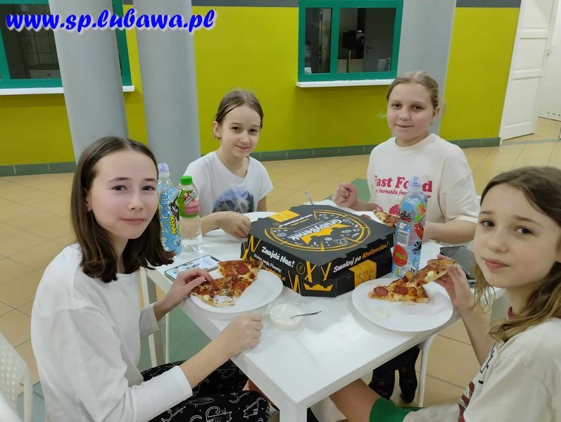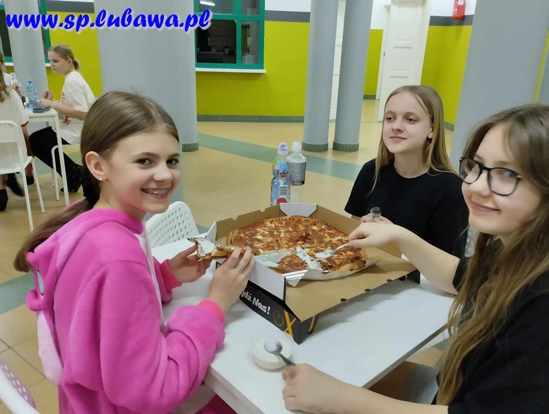 Miłym akcentem była przerwa na posiłek. Nic tak nie smakuje, jak ciepła pizza o późnej porze. Jednak najbardziej wyczekiwaną atrakcją wieczoru była zabawa w chowanego w ciemnej szkole.