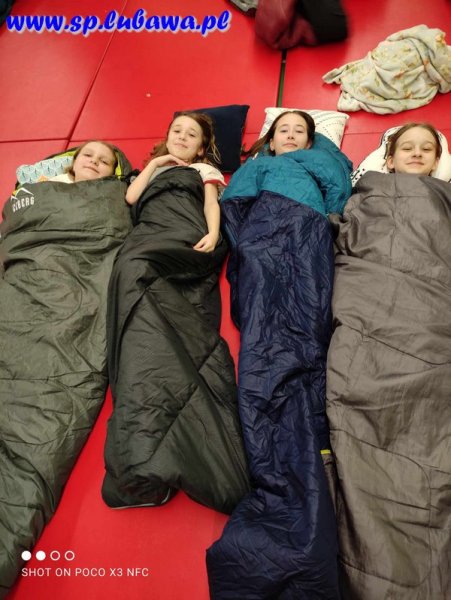 Z piątku na sobotę (22-23 marca) uczniowie klas V-VII pod opieką p. Kamili Długokęckiej, p. Walentyny Miszczak i p. Magdaleny Puwalskiej spędzili noc w szkole. W jej organizację w bardzo dużym stopniu zaangażowała się przewodnicząca szkoły Zofia Ziółkowska. Tematem przewodnim był „Powrót do dzieciństwa”.