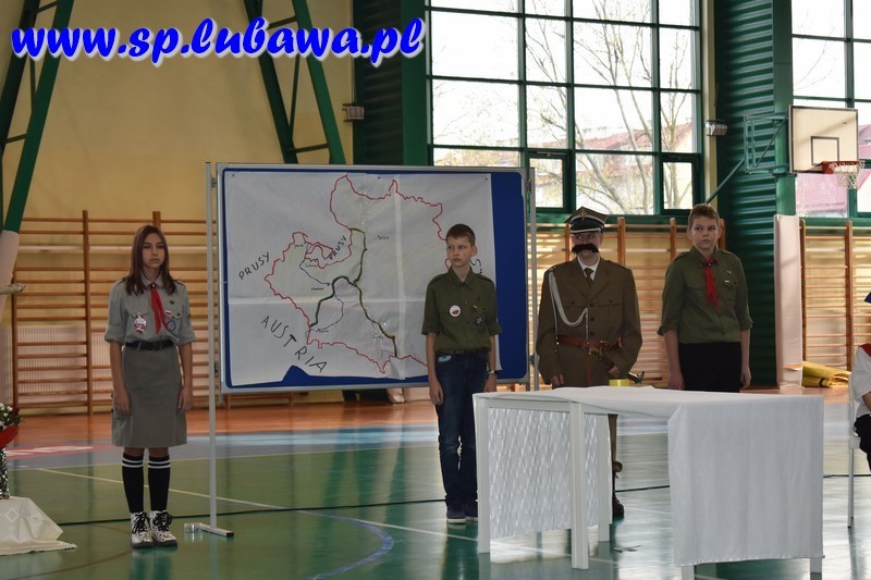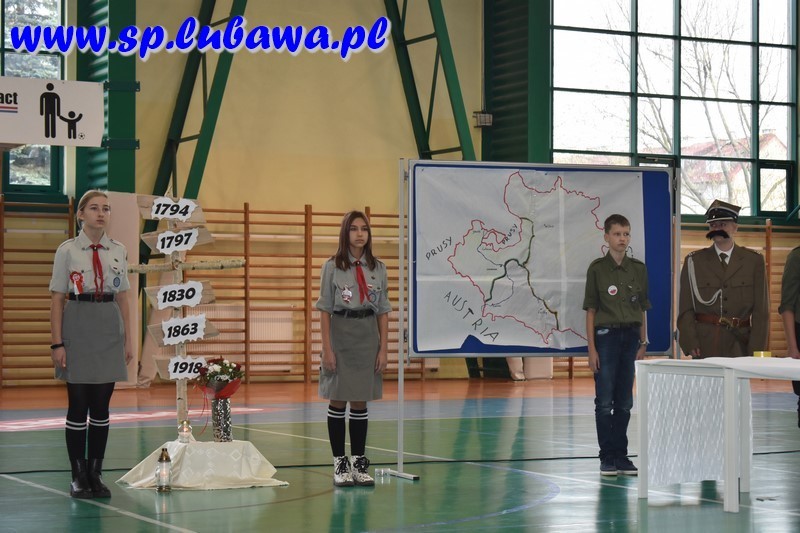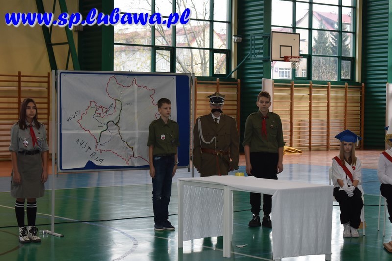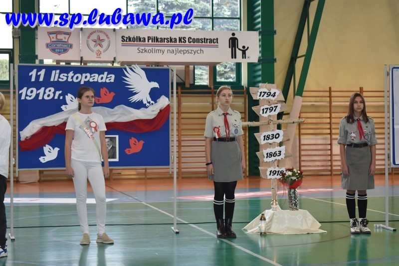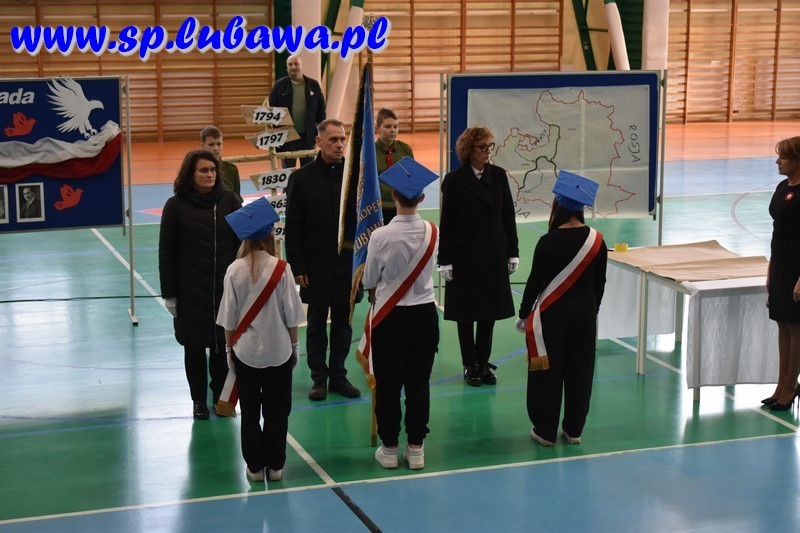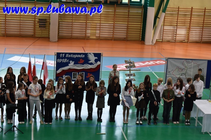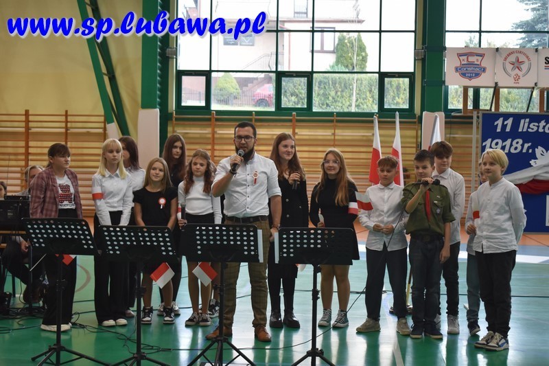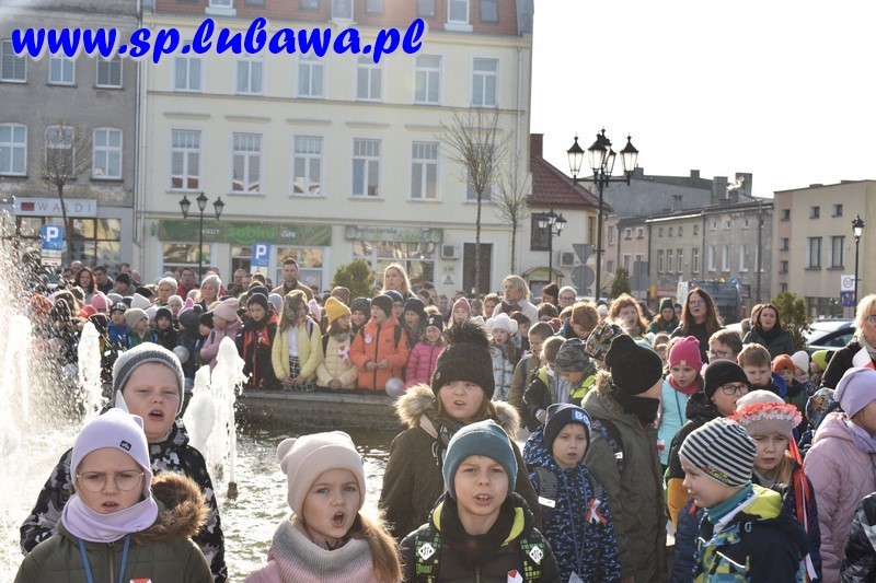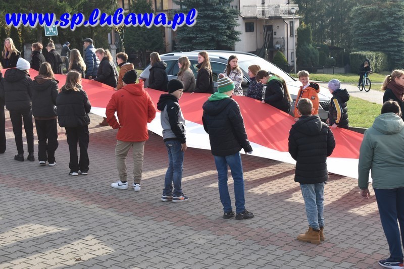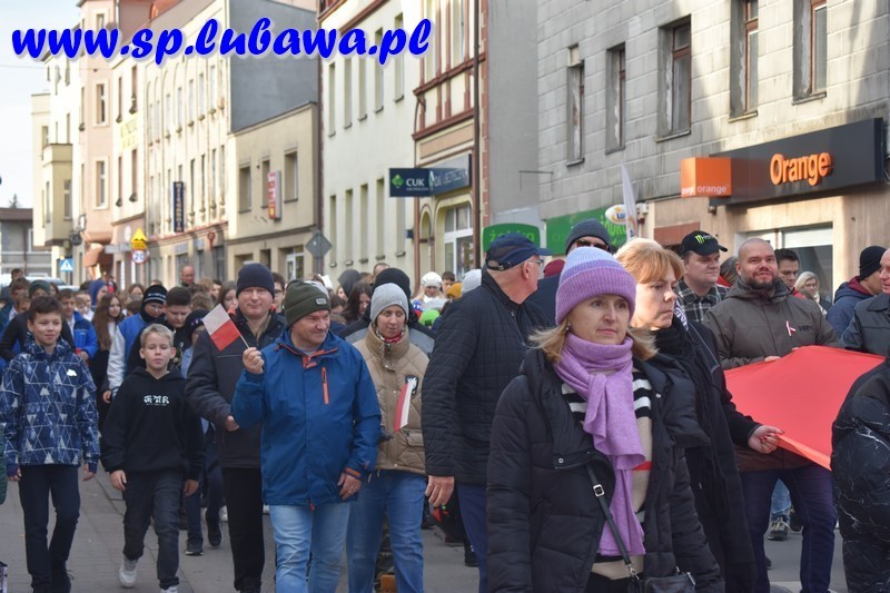 10 listopada w naszej szkole obchodziliśmy 105. rocznicę odzyskania przez Polskę niepodległości. Jest już tradycją, że uroczystości rozpoczęły się od wymarszu sprzed szkoły podstawowej o godzinie 10:40 społeczności szkolnej i flagi państwowej, której kierunek wytyczał poczet sztandarowy, uczeń (Nathaniel Wiśniewski) wcielający się w postać Józefa Piłsudskiego i harcerze. O godzinie 11:11 na lubawskim Rynku wspólnie ze zgromadzonymi mieszkańcami i władzami samorządowymi odśpiewano hymn państwowy.