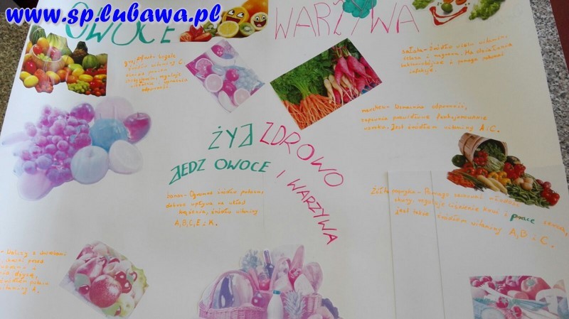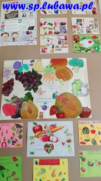 Podsumowaniem działań był udział uczniów w konkursie, który polegał na wykonaniu dowolną techniką prac plastycznych na temat „Warzywa i owoce- spożywam codziennie”. Na terenie naszej szkoły zorganizowano wystawę tych prac, którą można obejrzeć na parterze i I piętrze. Zapraszamy.