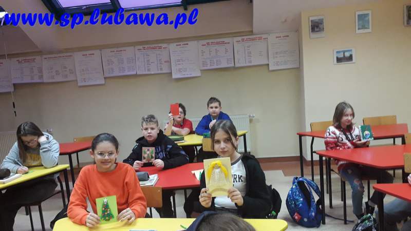 Dzięki pomocy p. Małgorzaty Niedźwieckiej uczniowie klasy 6a, 5g i 4s na lekcjach języka polskiego mogli wykonać kartki i napisać życzenia do mieszkańców Domu Pomocy Społecznej w Lubawie. Świadomość tego, że kartka ma trafić w konkretne ręce, niezwykle zmotywowała młodzież. Dzięki ich staraniom wszyscy podopieczni, a także dyrekcja i personel tej placówki otrzymają miłą niespodziankę od uczniów naszej szkoły.