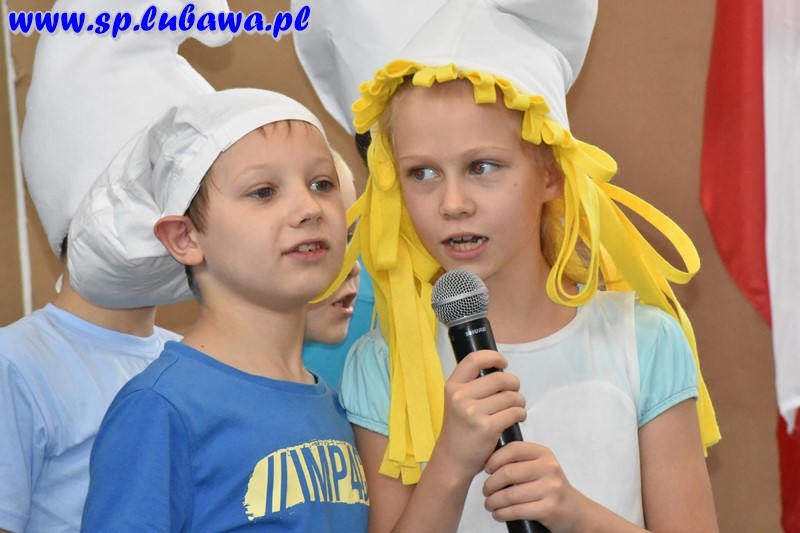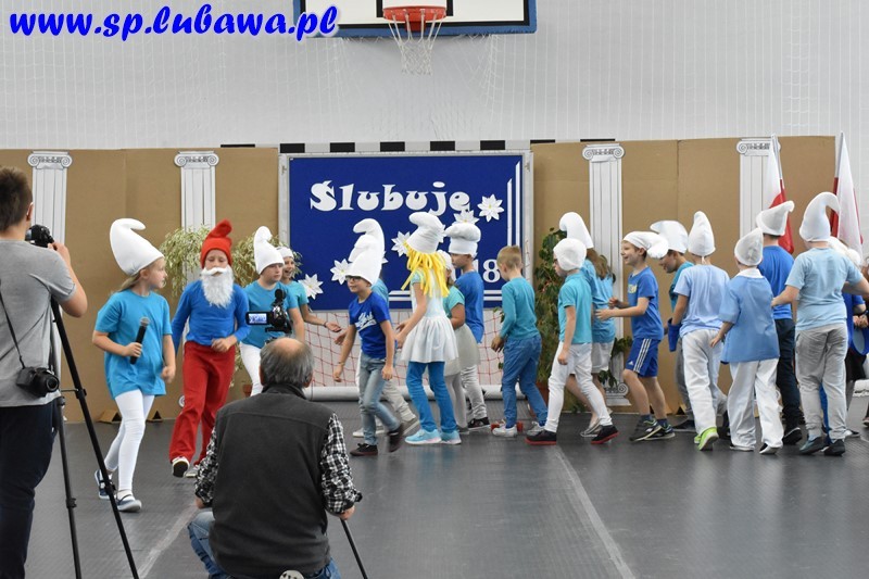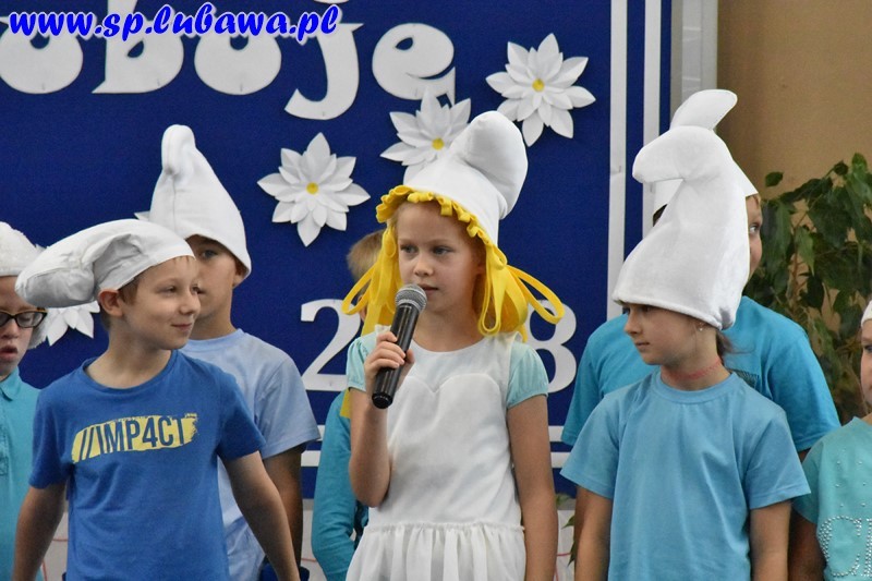 W tym dniu starsze koleżanki i starsi koledzy z klasy II b i III b pod kierunkiem pani Ewy Sendlewskiej i pani Gabrieli Prusik oraz pana Stanisława Grzywacza, opiekuna szkolnego chóru, przygotowały krótką część artystyczną. W swoich występach zapewniali maluszków, że: