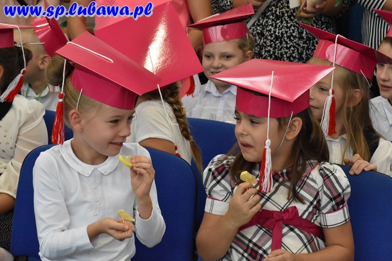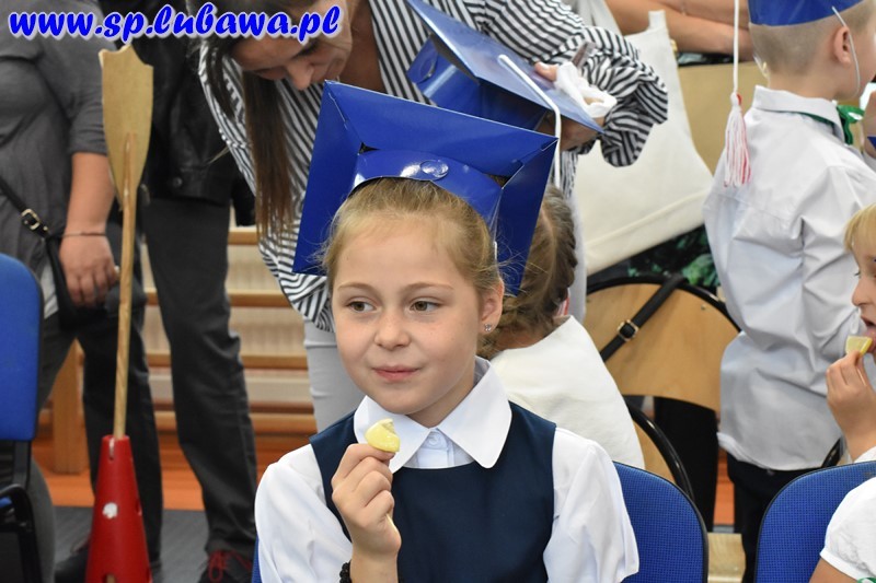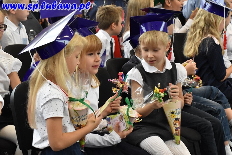 Przewodnicząca Samorządu Szkolnego, Aleksandra Klonowska, gorąco powitała bohaterów tego wzniosłego wydarzenia oraz zapewniła ich, że mogą zawsze liczyć na pomoc starszych kolegów i koleżanek. Po wyrecytowaniu przez pierwszoklasistów „Katechizmu małego Polaka” Władysława Bełzy nikt nie miał wątpliwości, że są oni gotowi, by złożyć uroczyste ślubowanie na sztandar szkoły. Pasowanie na ucznia przez pana dyrektora „zaczarowanym” ołówkiem było dla uczniów ogromnym przeżyciem. Wielką radość sprawiły nowym uczniom otrzymane identyfikatory, legitymacje szkolne oraz upominki podarowane przez Radę Rodziców i uczniów klas drugich.