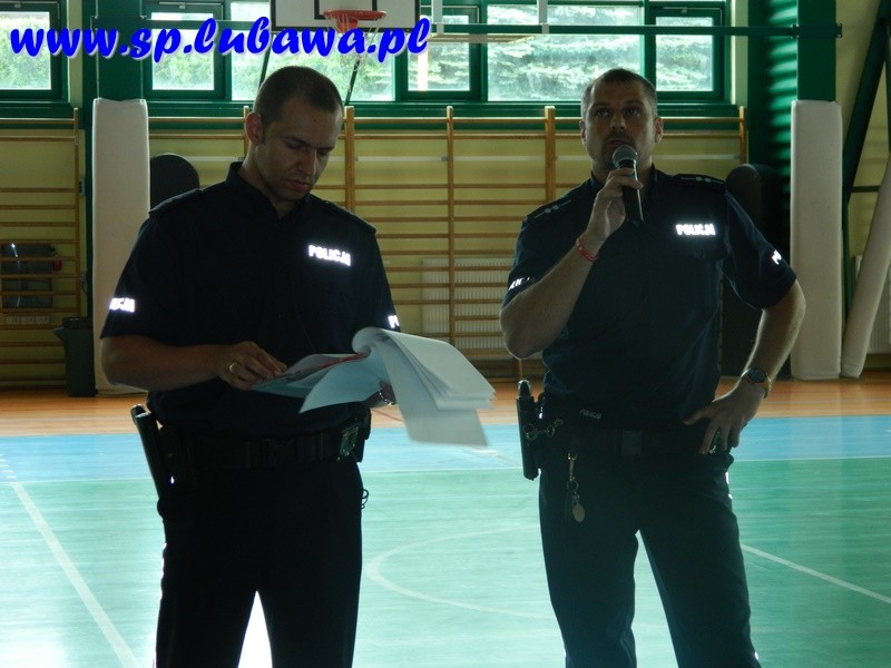 18.06.2018r. oraz 19.06.2018r. uczniowie naszej szkoły spotkali się z przedstawicielami Policji. Na początku asp. Marcin Grubalski przedstawił uczniom kilka informacji na temat zgłoszeń jakie trafiają do komisariatu Policji w Lubawie, na przykład dotyczące zaśmiecania ul. Witosa oraz niebezpiecznych zachowań młodzieży na tzw. młynie. Następnie asp. Sławomir Kłosowski przypomniał młodzieży zasady bezpiecznego korzystania ze zbiorników wodnych, czy poruszania się pod wpływem różnych substancji na rowerze, skuterze lub wsiadając do samochodu z osobą pod wpływem alkoholu. Przedstawił prawne konsekwencje i zachęcał do asertywnego postępowania w sytuacjach ryzykownych. Na koniec asp. Marcin Grubalski wspomniał o aplikacji, dzięki której można sprawdzić które z miejsc są niebezpieczne, gdzie najczęściej dochodzi do zachowań niedozwolonych.