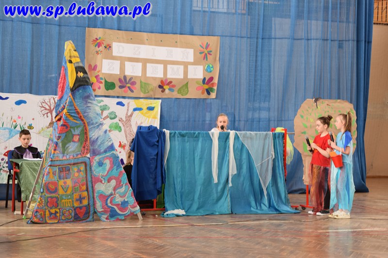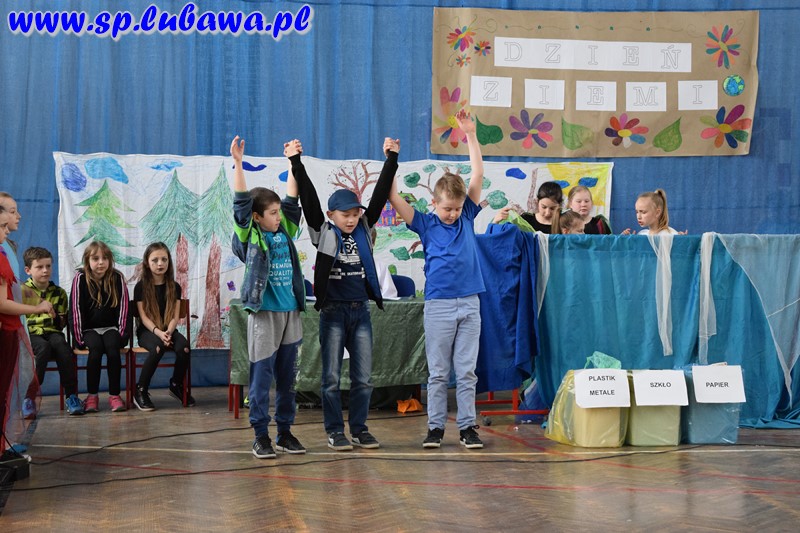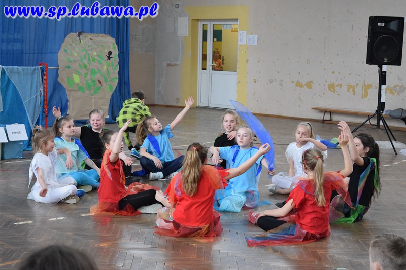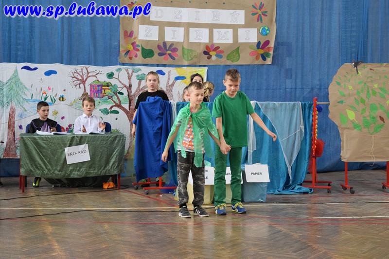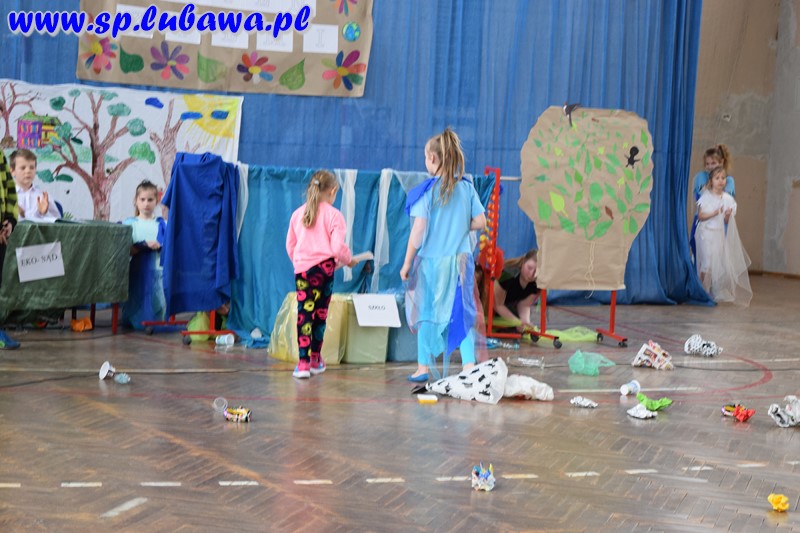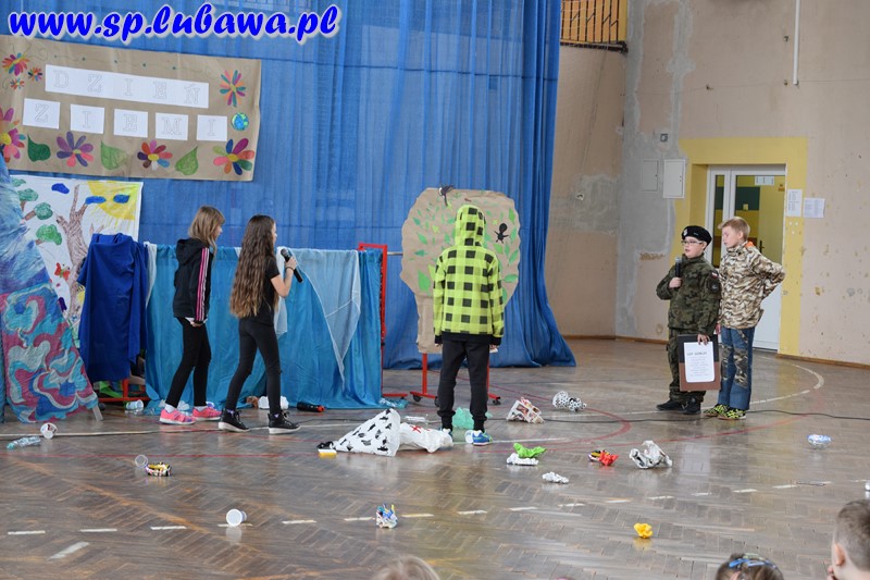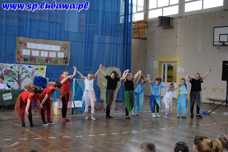 21 kwietnia 2017 r. z okazji Światowego Dnia Ziemi uczniowie klasy III G pod opieką Pani Doroty Wierzbowskiej zaprezentowali spektakl ekologiczny pt. „Misja zaczarowanych rybek”. Bohaterami przedstawienia w I akcie były liczne postacie: Ola, Kasia, rybki mieszkające w zatrutym jeziorze, drzewa, powietrze i woda. Następnie pojawili się leśnicy, truciciele i sędziowie. Cała historyjka zakończyła się szczęśliwie. Truciciele wykazali skruchę i podjęli działania ekologiczne na rzecz Ziemi. Podczas spektaklu młodzi aktorzy w ciekawy sposób przekazywali informacje o polskich jeziorach i lasach. Mówili o zjawiskach niebezpiecznych dla środowiska naturalnego typu: kwaśne deszcze, zanieczyszczenia, dziura ozonowa, freon, tlenki siarki i azotu. Aktorzy przeprowadzili również krótką lekcję na temat recyklingu i segregacji śmieci. W zabawie brały udział zaproszone dzieci z Przedszkola Miejskiego. Po przedstawieniu szkolna grupa Pantarej zaprezentowała taniec pt. „Cztery żywioły”. Dziękujemy miłym widzom za zainteresowanie i brawa.