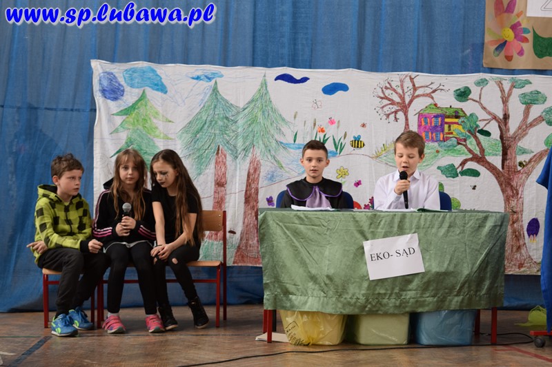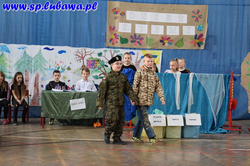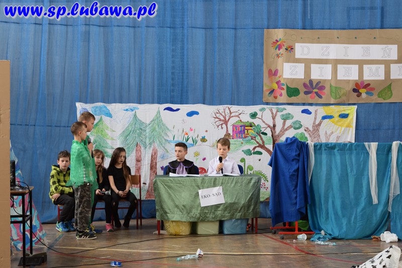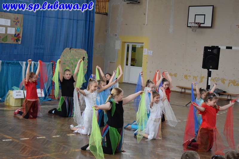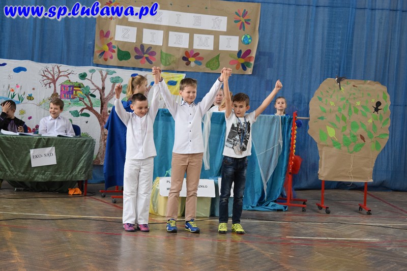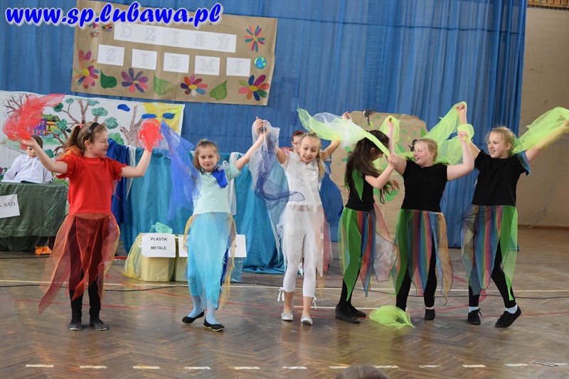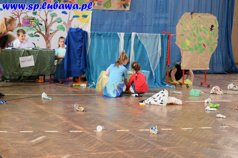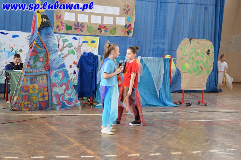 21 kwietnia 2017 r. z okazji Światowego Dnia Ziemi uczniowie klasy III G pod opieką Pani Doroty Wierzbowskiej zaprezentowali spektakl ekologiczny pt. „Misja zaczarowanych rybek”. Bohaterami przedstawienia w I akcie były liczne postacie: Ola, Kasia, rybki mieszkające w zatrutym jeziorze, drzewa, powietrze i woda. Następnie pojawili się leśnicy, truciciele i sędziowie. Cała historyjka zakończyła się szczęśliwie. Truciciele wykazali skruchę i podjęli działania ekologiczne na rzecz Ziemi. Podczas spektaklu młodzi aktorzy w ciekawy sposób przekazywali informacje o polskich jeziorach i lasach. Mówili o zjawiskach niebezpiecznych dla środowiska naturalnego typu: kwaśne deszcze, zanieczyszczenia, dziura ozonowa, freon, tlenki siarki i azotu. Aktorzy przeprowadzili również krótką lekcję na temat recyklingu i segregacji śmieci. W zabawie brały udział zaproszone dzieci z Przedszkola Miejskiego. Po przedstawieniu szkolna grupa Pantarej zaprezentowała taniec pt. „Cztery żywioły”. Dziękujemy miłym widzom za zainteresowanie i brawa.