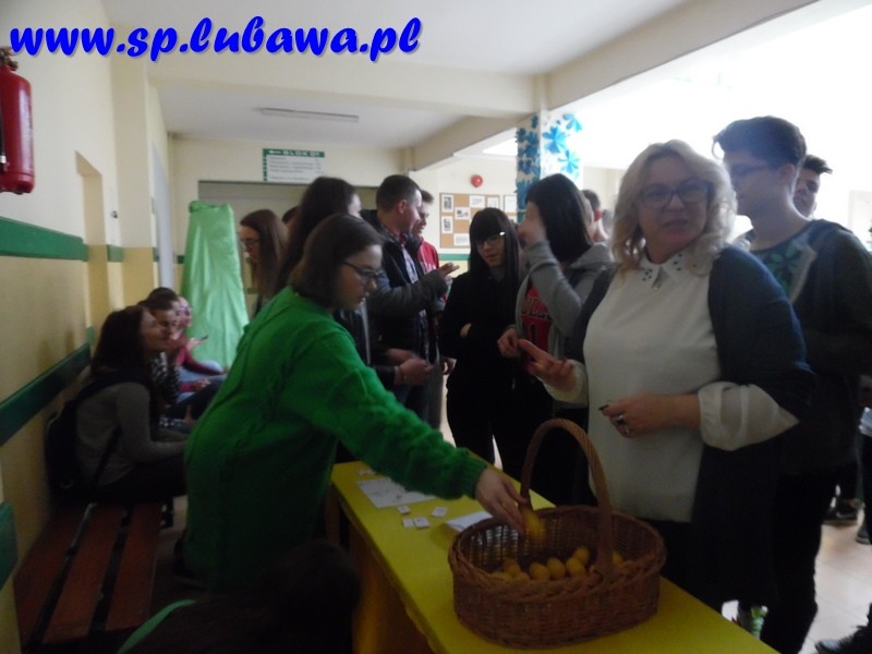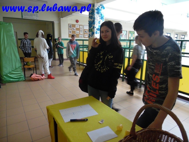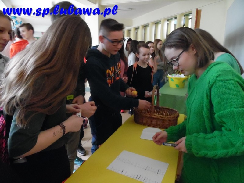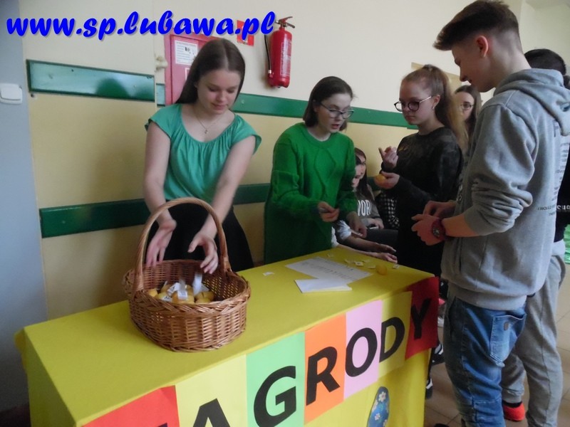 Członkowie Samorządu postanowili przenieść tę tradycję na grunt naszej szkoły. Przygotowali jajeczka- niespodzianki, które zostały ukryte w różnych miejscach szkoły ( kilka jajeczek ukryto w pokoju nauczycielskim). Podczas długiej przerwy zadaniem uczniów i nauczycieli było odnalezienie niespodzianek. W każdym jajku ukryty był numerek, z którym należało udać się do stoiska z nagrodami.