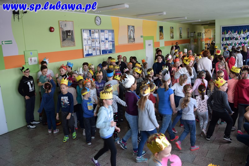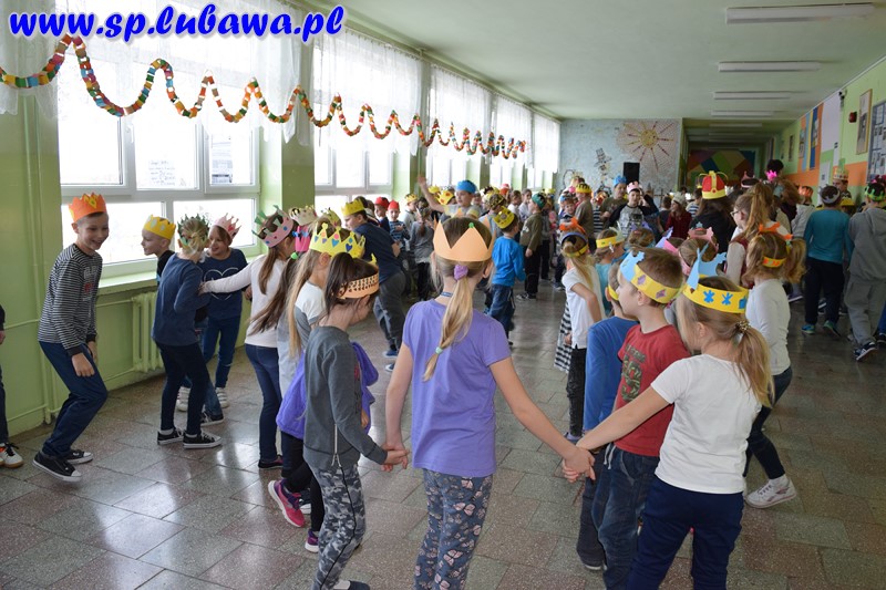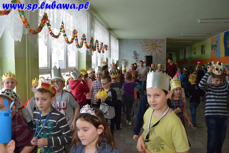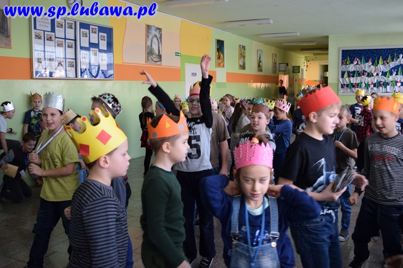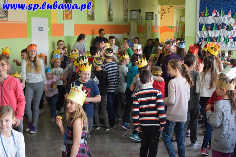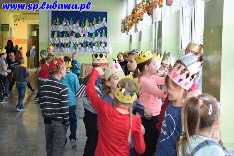 Uczniowie szkoły podstawowej włączyli się w obchody święta Trzech Króli, które w tym roku po raz pierwszy będą organizowane 6 stycznia pod nazwą Orszak Trzech Króli. Od kilku dni przygotowywali atrybuty związane z tym świętem – korony. Dziś zdobiły głowy uczniów klas I-VI. Podczas przerw uczestniczyli w wesołych zabawach przy muzyce świąteczno-karnawałowej.