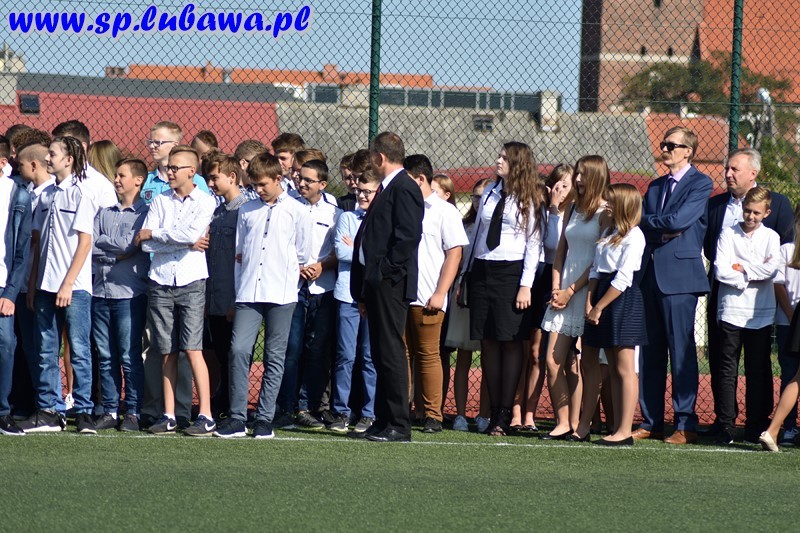 Apel rozpoczynający nowy rok szkolny zaczął się o godz. 10.00. Uczniów, nauczycieli, pracowników szkoły, rodziców oraz zaproszonych gości: burmistrza miasta Macieja Radtke, zastępcę burmistrza Stanisława Kieruzela, przewodniczącego Rady Miasta Lubawa Jana Sarnowskiego, ks. Marcina Staniszewskiego, prezesa PWiK Bolesława Zawadzkiego, komendanta policji Artura Sibilewskiego, dyrektora Miejskiego Przedszkola w Lubawie Anitę Grubalską, dyrektora Żłobka Miejskiego w Lubawie Lucynę Janus, dyrektora MOK Zenona Paprockiego, dyrektor OSiR Jacka Różańskiego, kierownika MOPS Bożenę Knabe, radnych: Annę Tańską, Janusza Sobiechowskiego, przedstawicieli Rady Rodziców oraz media przywitał dyrektor szkoły Mirosław Kowalczyk.